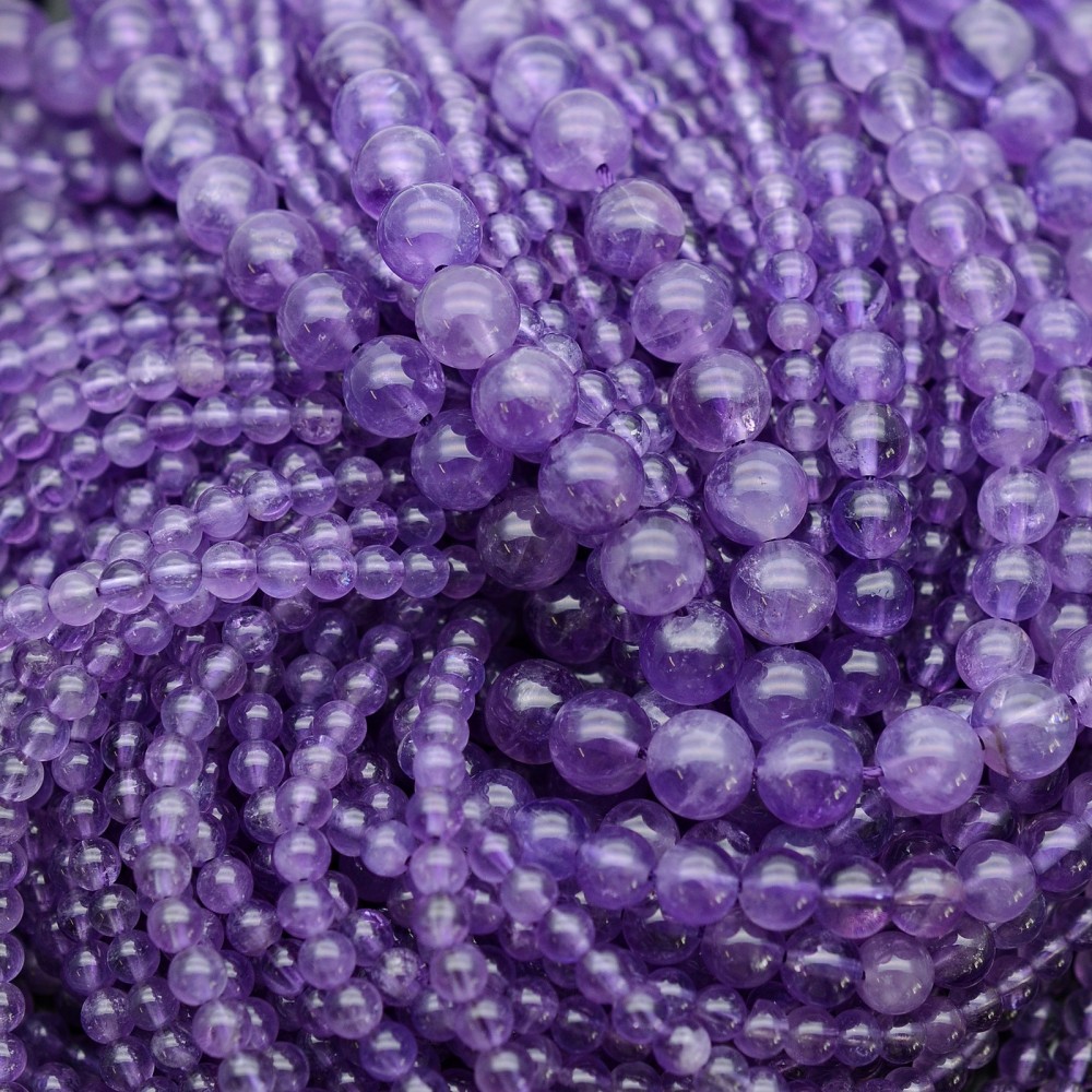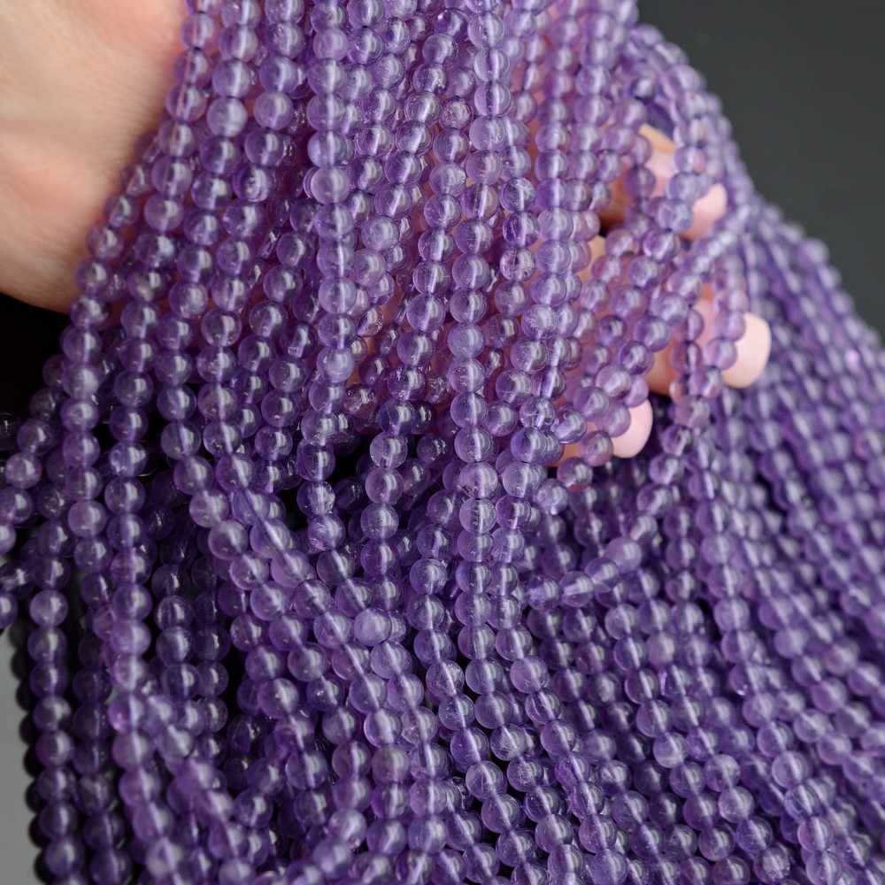Бусины аметиста очень хорошего качества, отлично отполированные и без сколов.