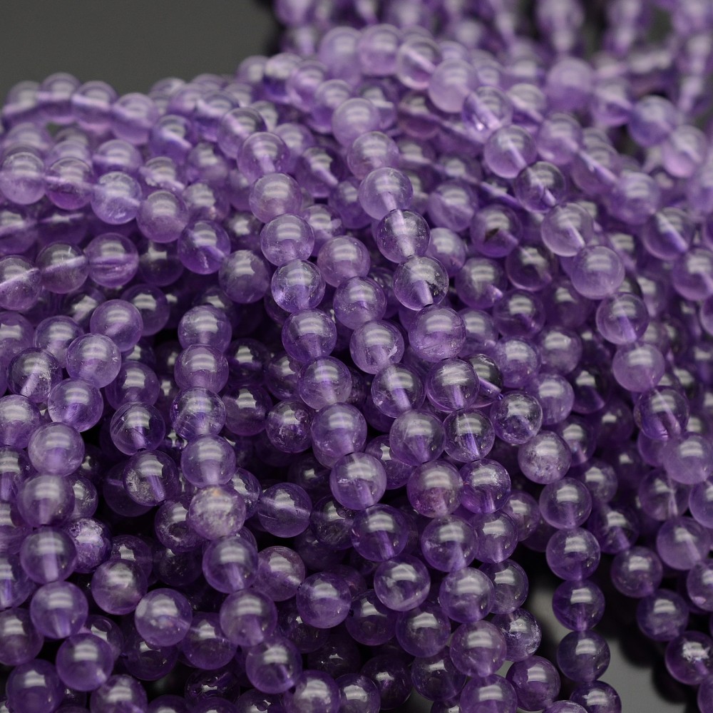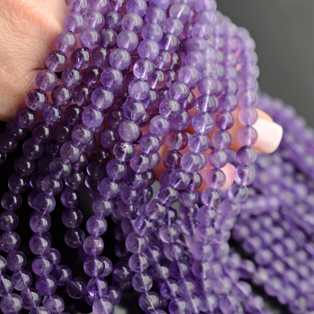Бусины аметиста очень хорошего качества, отлично отполированные и без сколов.