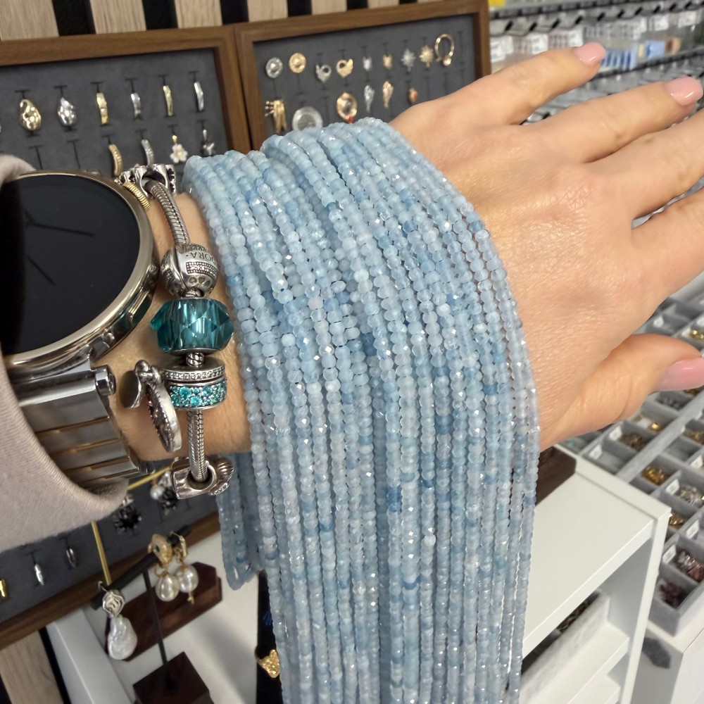 Теги: аквамарин, бусины для чокера, рондель, рондели