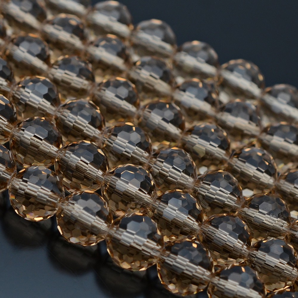 Качественные хрустальные бусины с алмазнй огранкой. Благодаря большое количеству граней бусины красиво переливаются при любом освещении.