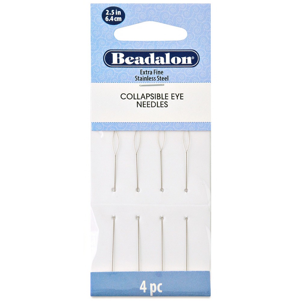 Набор из 4 гибких тонких игл с большим складным ушком. Такие иглы предназначены для облегчения нанизывания бисера и бусин на тонкую нить, леску, спандекс, резинку и т.д.