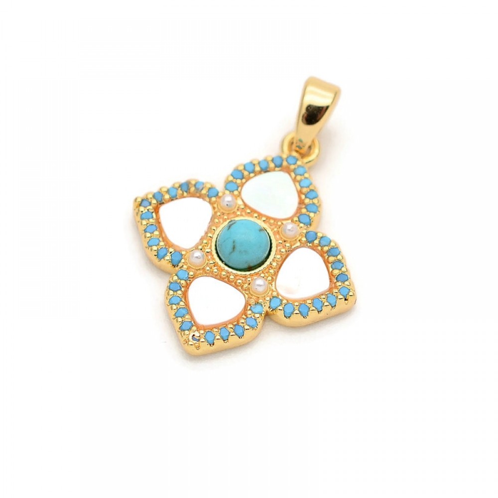Теги: подвеска с фианитами, клевер, фурнитура Люкс, трилистник, четырехлистник, clover, перламутр, бирюза
